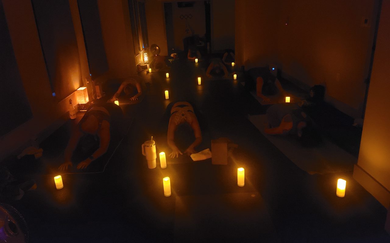 We offer: Power Vinyasa, Restorative, Yin (deep stretch/floor work), Candlelight, and various others. Private sessions also available.